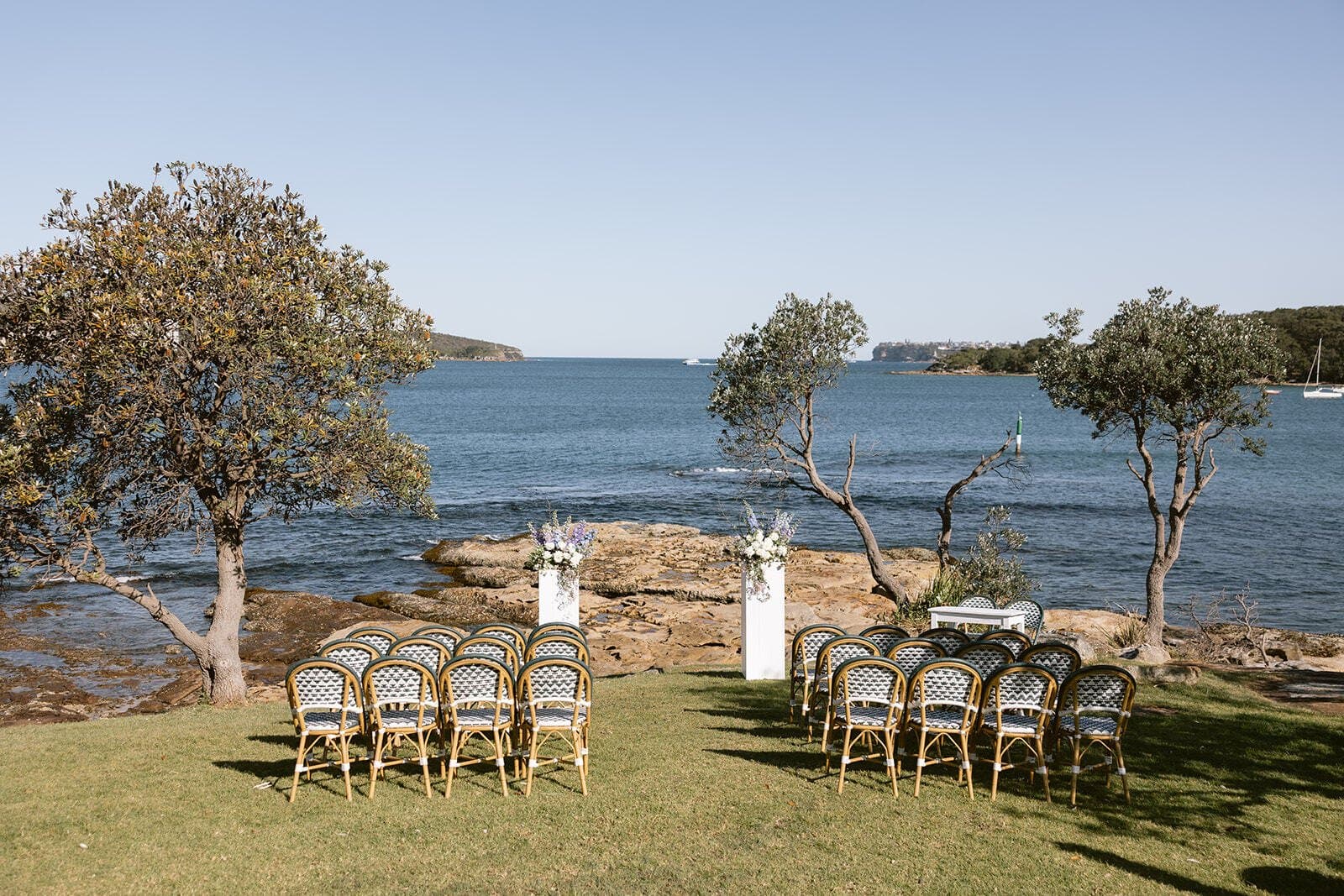 Located behind a high stone wall, Freshwater View Reserve offers total privacy for your intimate outdoor ceremony, boasting stunning views over Freshwater Beach. This location is booked through the Northern Beaches Council by obtaining a permit. For styling, one of our Boathouse Ceremony Styling Packages can be booked.
