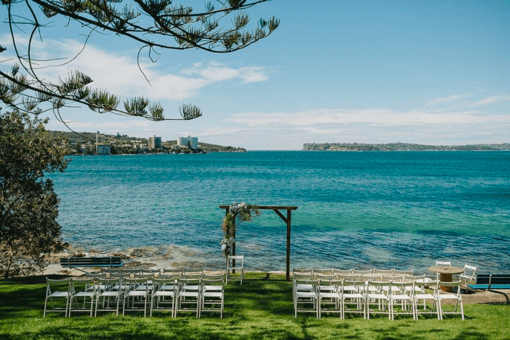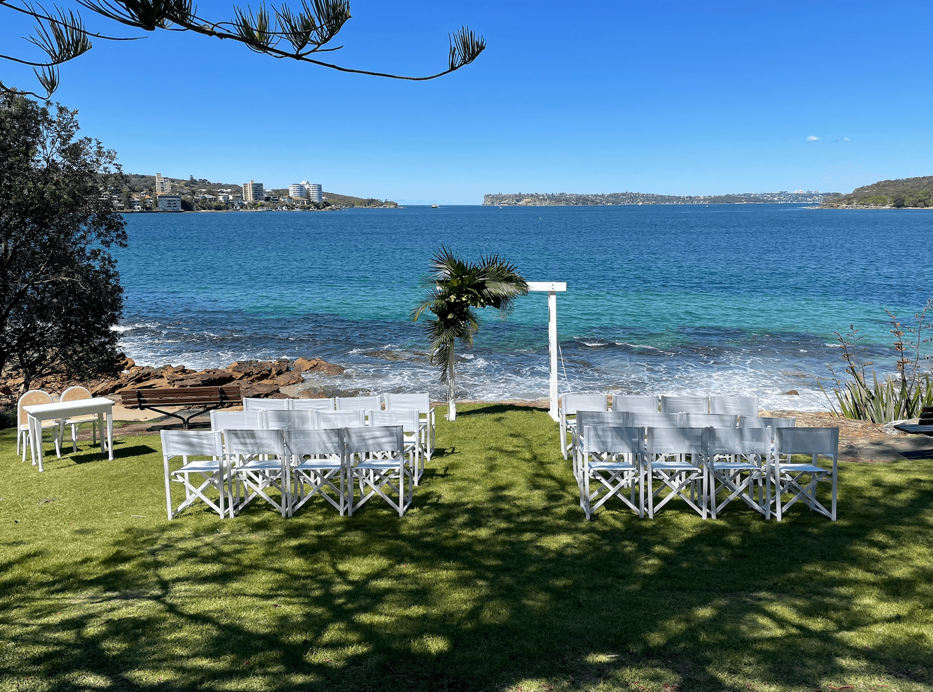 Located just a short stroll from Manly Pavilion, Fairlight Beach Reserve offers a peaceful, elevated setting for an outdoor ceremony, framed by native trees and uninterrupted harbour views. This picturesque reserve provides a naturally beautiful backdrop for ceremonies. This location is booked through the Northern Beaches Council by obtaining a permit. For styling, one of our Boathouse Ceremony Styling Packages can be booked.
