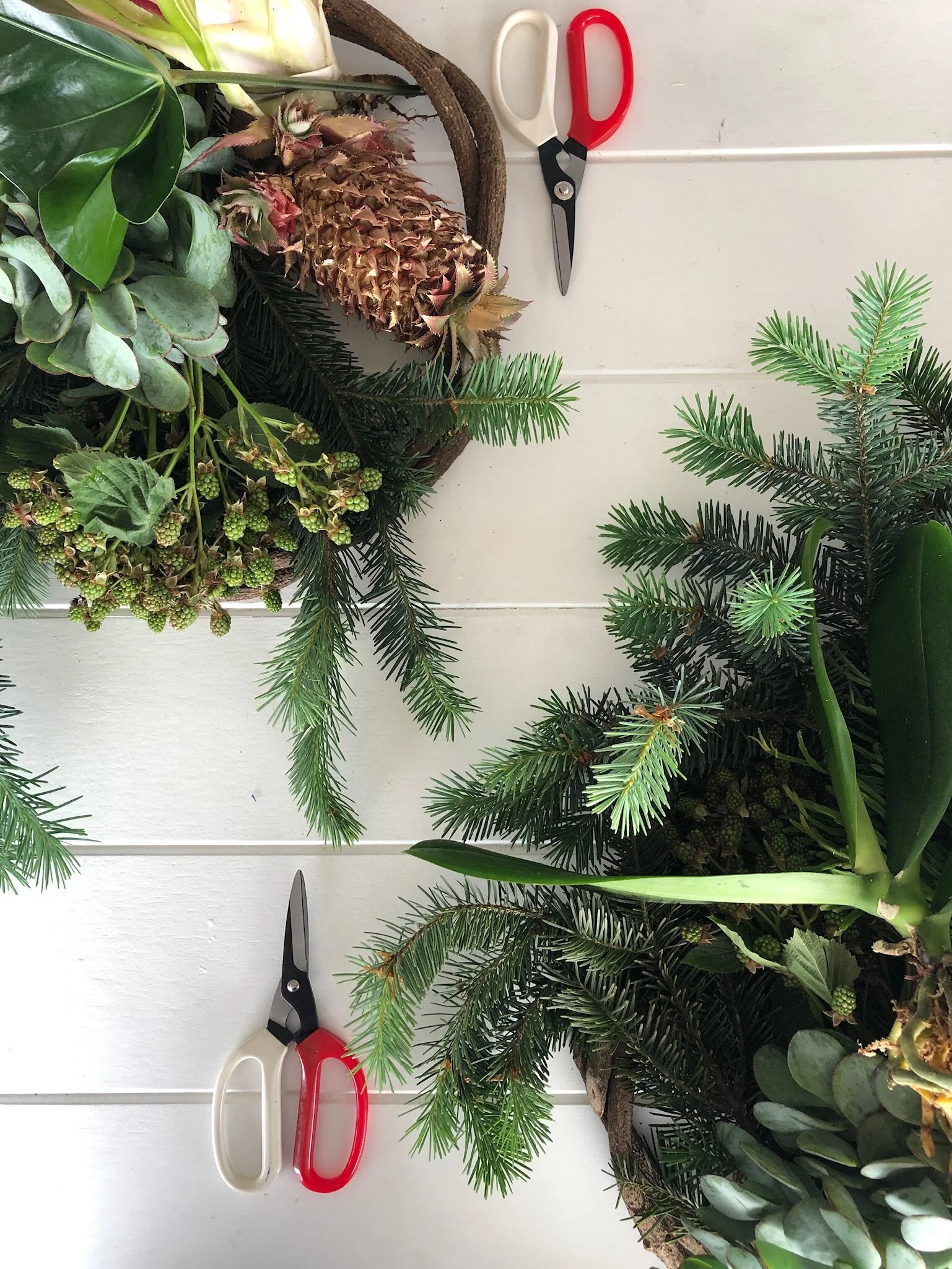 Guests could choose from a selection of fresh greenery and decorations to work with and design their own Christmas wreath for home.