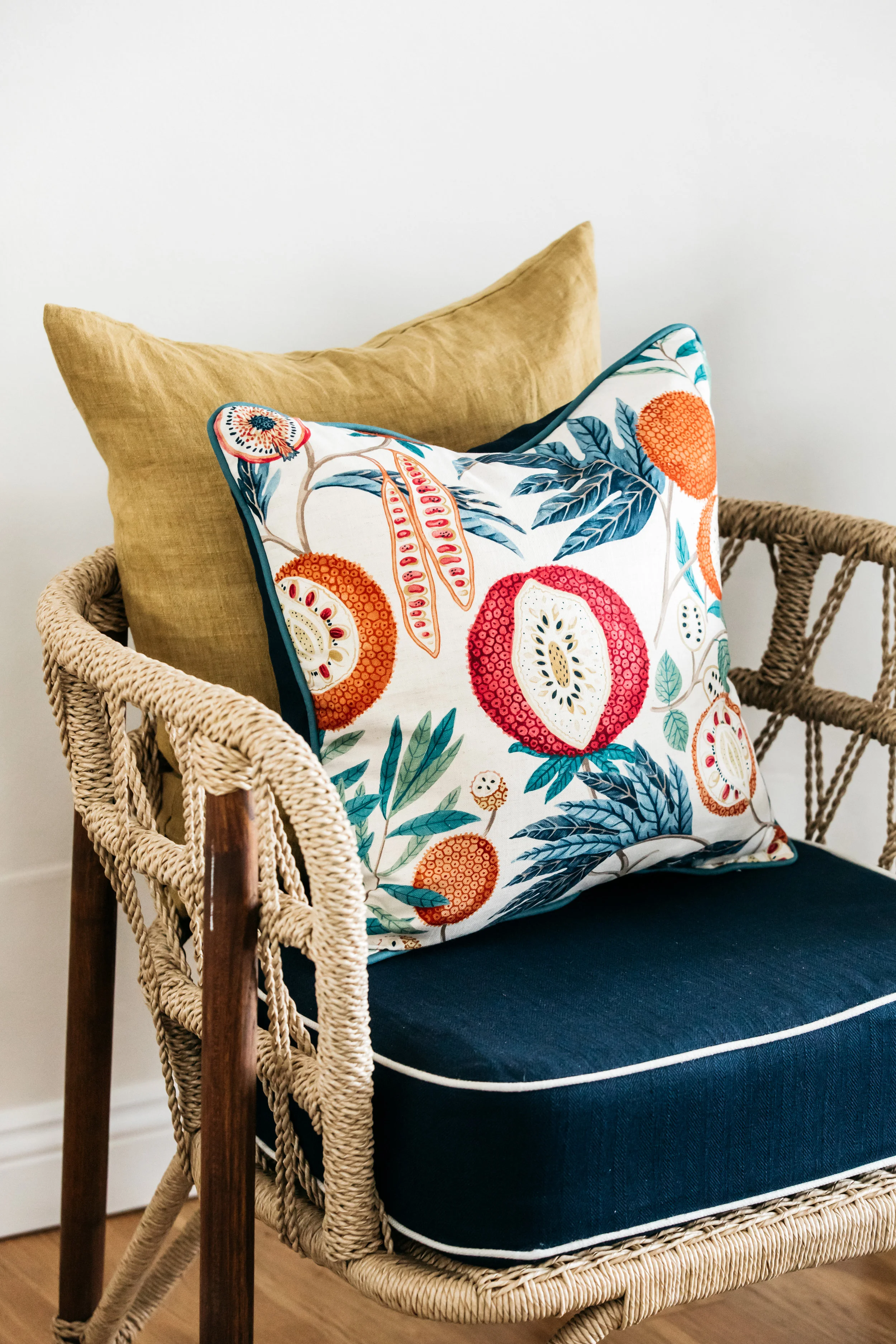 The team at The Boathouse Home source fabrics from around the world and design one of a kind, cushions, bed heads, lampshades and more.