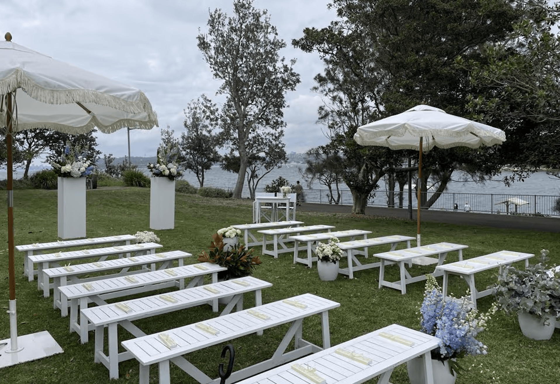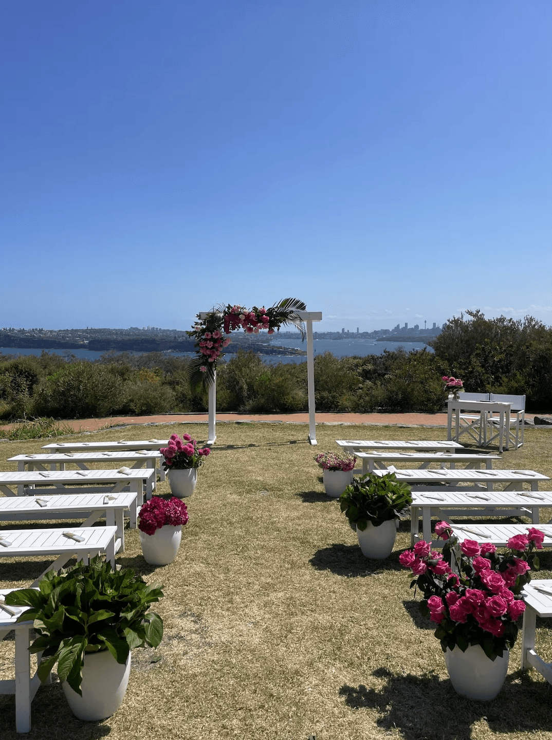 Perfect for your garden or beachside ceremony, The Boathouse ceremony styling packages can be set up at any location between Palm Beach to Mosman. Please get in touch with our team to discuss details.