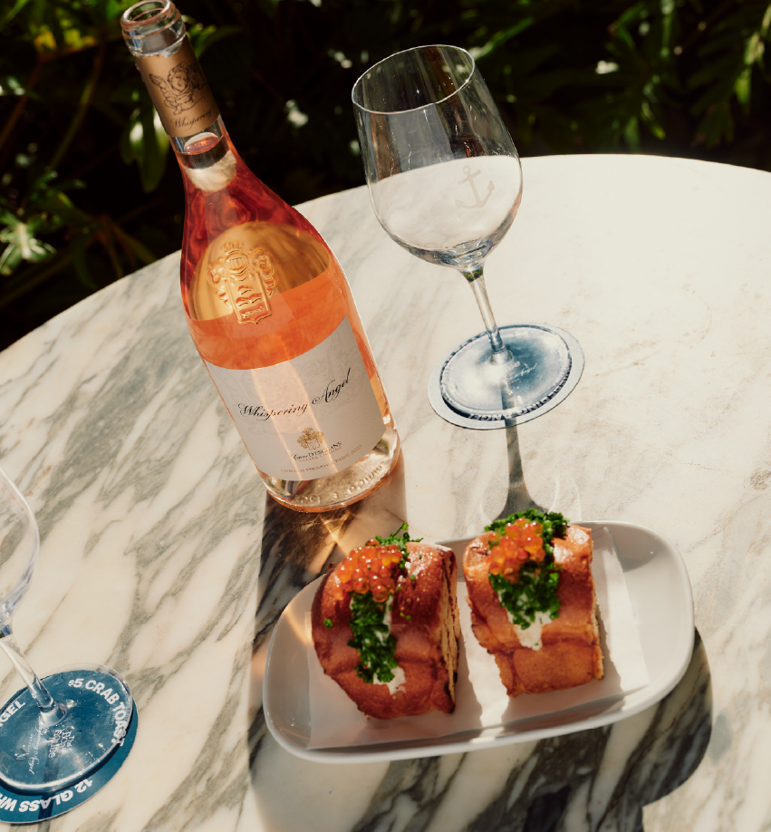 $5 CRAB TOAST + $12 GLASSES OF WHISPERING ANGEL Rosé